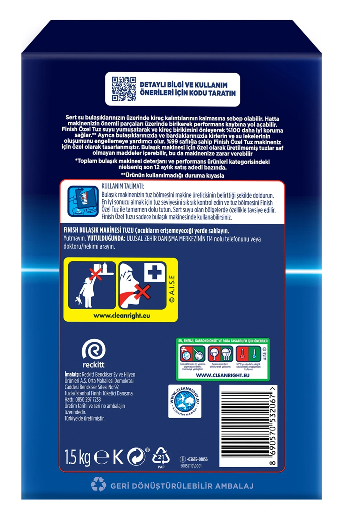 Bulaşık Makinesi Tuzu Kireç Kalıntılarına Karşı Koruyucu 1500 Gram 1 Adet
