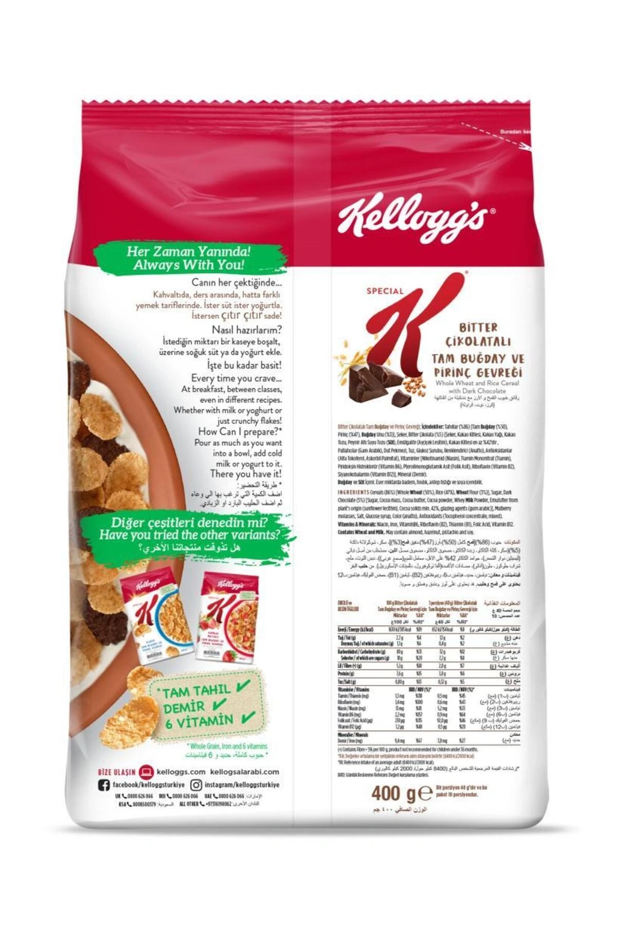 Special K Bitter Çikolatalı Kahvaltılık Tam Buğday Ve Pirinç Gevreği 400 Gr,tam Tahıllı